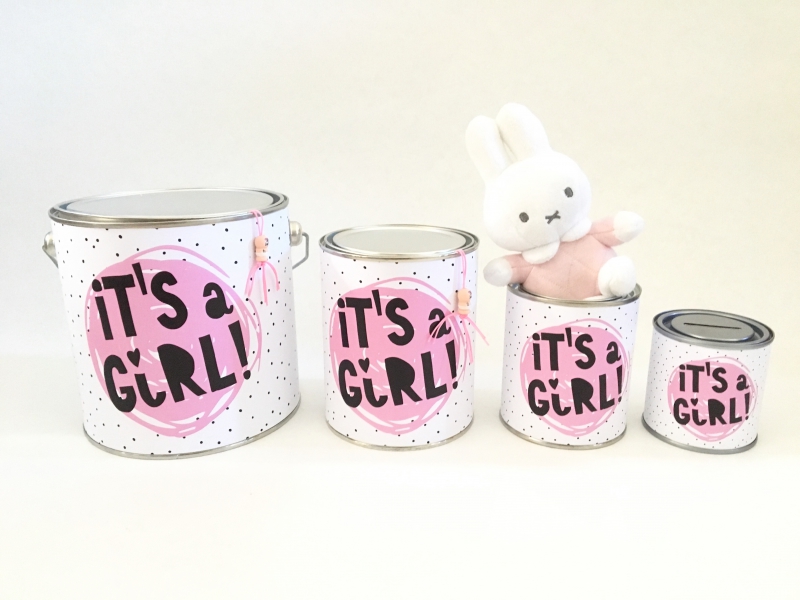 Geboorte blik voor een meisje of jongen om te vullen met bijvoorbeeld sokjes, een rompertje of speelgoed. Leuk als bewaarblik voor later.